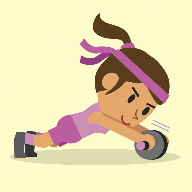 - Para el abdominal con rodillo o abdominal carreta ponte de rodillas en el suelo y con los brazos completamente extendidos sostén la rueda, con ambas manos.