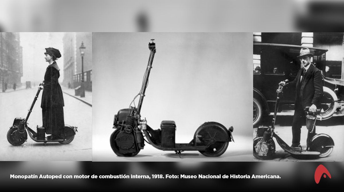 El primer scooter motorizado fue creado por la empresa Autoped, en Long Island City, Nueva York, y desde su inicio fue pensado para recorrer distancias cortas. Época de Primera Guerra Mundial y era fundamental cuidar el consumo de combustible. Diseñado por Arthur Gibson y Joseph Merkel, representaba todo un avance para la época, principalmente por su compactabilidad. El manubrio se podía plegar sobre la plataforma, permitiendo que el vehículo ocupase menos espacio en las casas u oficinas.