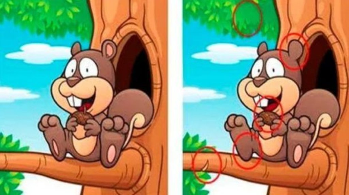 En la imagen se puede observar a una ardilla, pero hay algo diferente en su apariencia. Tu tarea es encontrar las 5 diferencias lo más rápido posible.