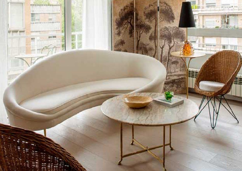 La curva es llamativa en interiorismo al ojo porque rompe con la linealidad del cubo que suelen formar los espacios: techo, paredes y suelo. La mayoría de los muebles añaden más líneas rectas y paralelas. De ahí que de repente la curva, destaque. Tanto mesas auxiliares como butacas o asientos de menor tamaño, cojines, jarrones y lámparas son elementos con los que puedes introducir la nota que buscas. Porque no se trata tanto de estampados o motivos, sino de volúmenes que aporten sinuosidad.