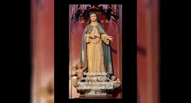 Santa Beatriz de Silva, conocida también como “la dama de semblante velado”, fue proclamada Santa en 1926 y canonizada en 1976; se le conmemora cada 17 de agosto; se trata de una popular religiosa, creadora de la Orden de la Inmaculada Concepción.