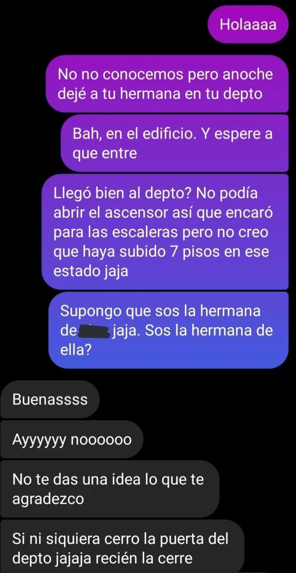"Toqué varias veces el portero que me dijo ella (que al otro día me enteré que no era ese jaja, perdón al dueño del depto que toqué) y nadie salía, tampoco le atendían el teléfono. Estuve unos 20 minutos esperando a que alguien que llegue, y nadie llegó", siguió contando.