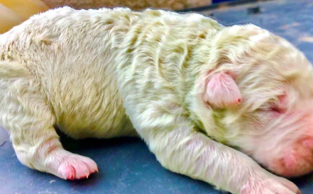 Cristian Mallocci, un agricultor italiano, se llevó una sorpresa al ver a los cachorros que acababa de tener su perra "Spelacchia" en su granja de Cerdeña: uno de ellos tenía un color verdoso.
