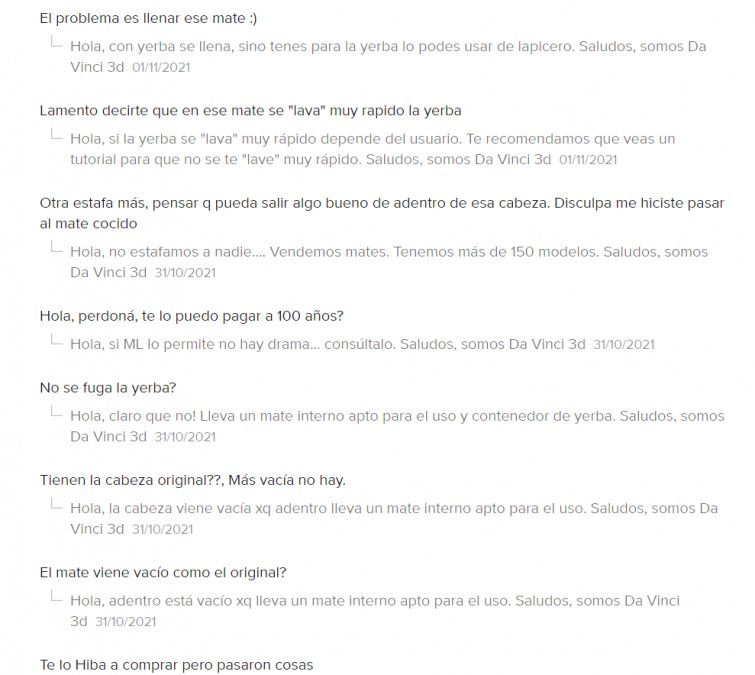 Por supuesto que el vendedor se armó de paciencia, seguramente la habrá reforzado con algún “tecito” de tilo y le respondió a cada uno con mucho respeto y cordura. Esta situación no fue exclusiva del mate del ex jefe de estado, ya que estas “chicanas” del estilo aparecieron por decenas en las publicaciones de Cristina Fernández de Kirchner y Alberto Fernández, por lo que hay material de sobre para reírse un rato. Ubicado en Bahía Blanca, este negocio vende el mate por $1.000 pesos.