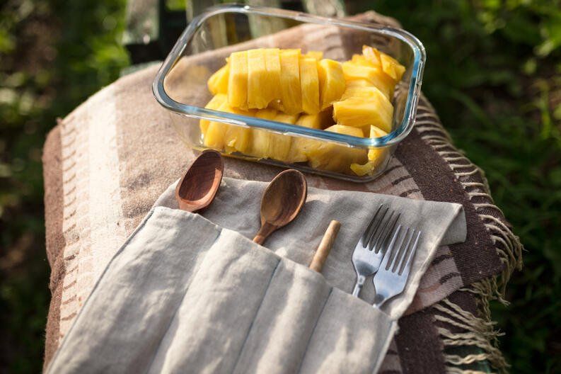 Los envoltorios de tela, que podemos hacer en casa con retazos de tela, ayudarán a evitar muchísimos residuos. Otra idea para el momento del almuerzo o merienda fuera de casa es llevar un vaso y utensilios de casa, para evitar los desechables que suelen ser de plástico de un solo uso. No olviden sumar la servilleta de tela para evitar las de papel.