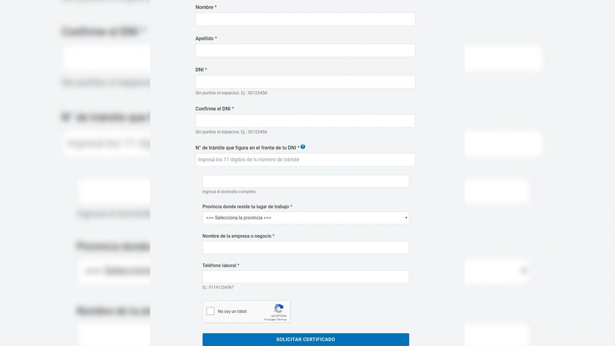 Paso 4: Hay que completar el formulario y prestar atención en todos los datos que se solicitan para realizarlo correctamente. Una vez finalizado, hay que marcar la penúltima casilla que tiene la frase “No soy un Robot", y luego clickear “Solicitar Certificado”.