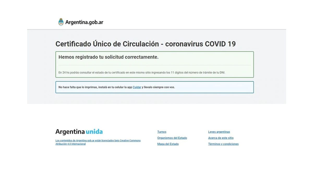 Paso 5: Llegará la confirmación de que su solicitud de permiso de circulación fue registrada correctamente. El propio sistema se lo confirmará en la misma página web. En el plazo de 24 horas, cada uno podrá consultar el estado de su certificación en la misma web oficial.