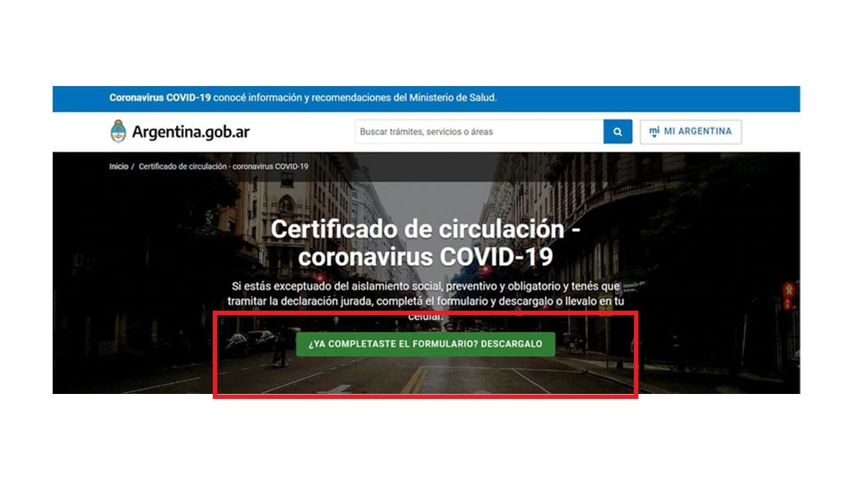 Paso 6: Una vez que el certificado esté completo, hay que regresar a la página inicial https://www.argentina.gob.ar/circular y clickear el botón verde con la frase “¿Ya completaste el formulario? Descargalo”.
