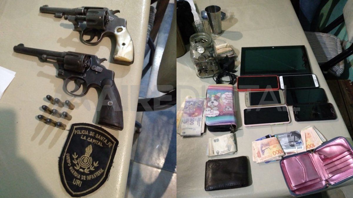 Del interior del a vivienda, los uniformados secuestraron tres revólveres calibre 32, 12 cartuchos, una suma importante de dinero en efectivo, un teléfono celular, material estupefaciente y una balanza de precisión.