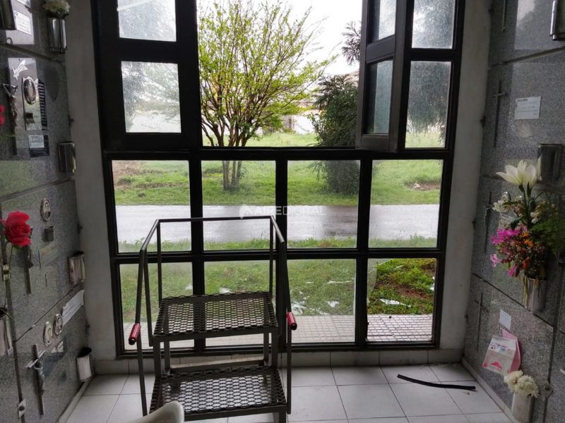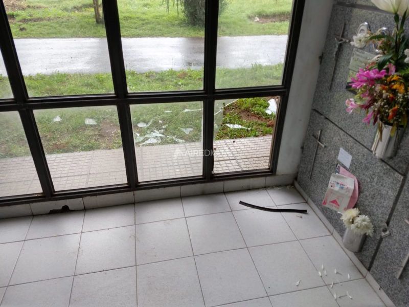 Los ladrones rompieron vidrios del panteón y por allí pudieron ingresar. Una vez dentro, se llevaron nueve sillas, un dispenser de agua y una máquina de cortar césped, entre otros elementos.