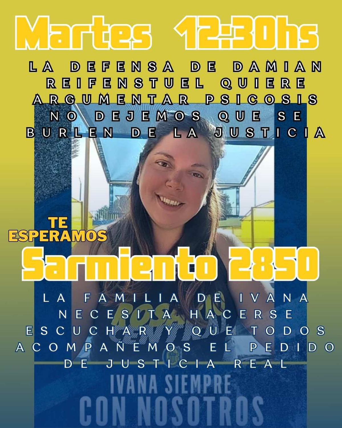 "No dejemos que se burlen de la Justicia", reclamó la hermana de la víctima, al tiempo que sostuvo: "La familia de Ivana necesita hacerse escuchar y que todos acompañemos el pedido de justicia real".