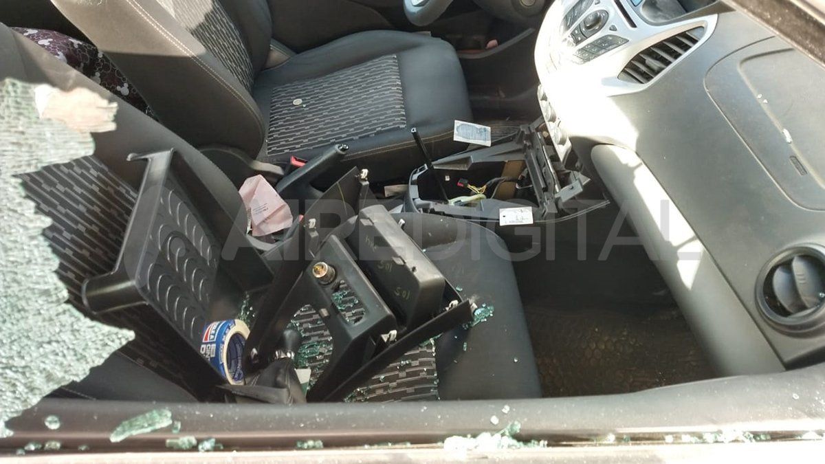 En el interior del automóvil también provocaron destrozos, en el sector donde está la palanca de cambio. Además quedaron todos los vidrios esparcidos en el interior del vehículo.