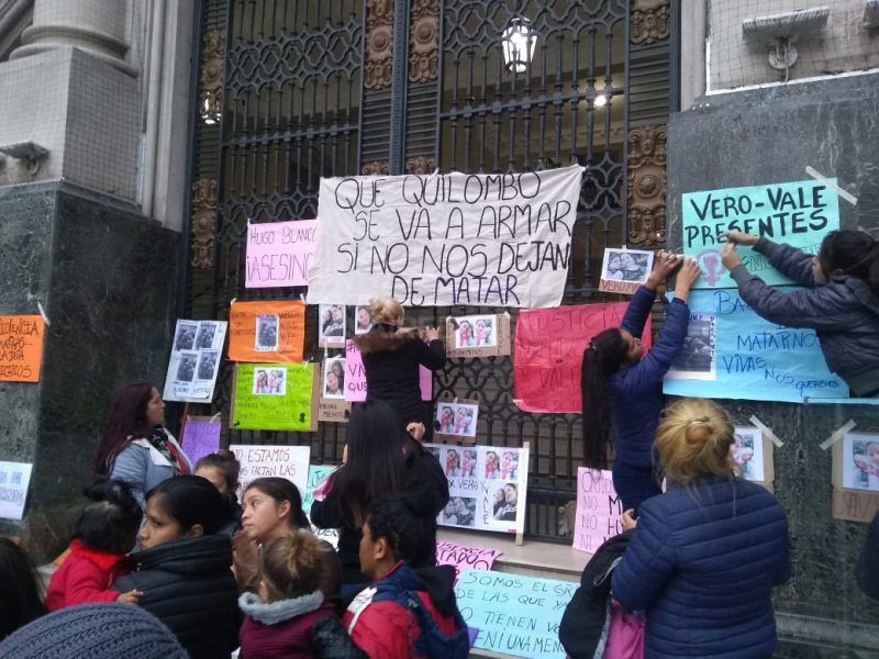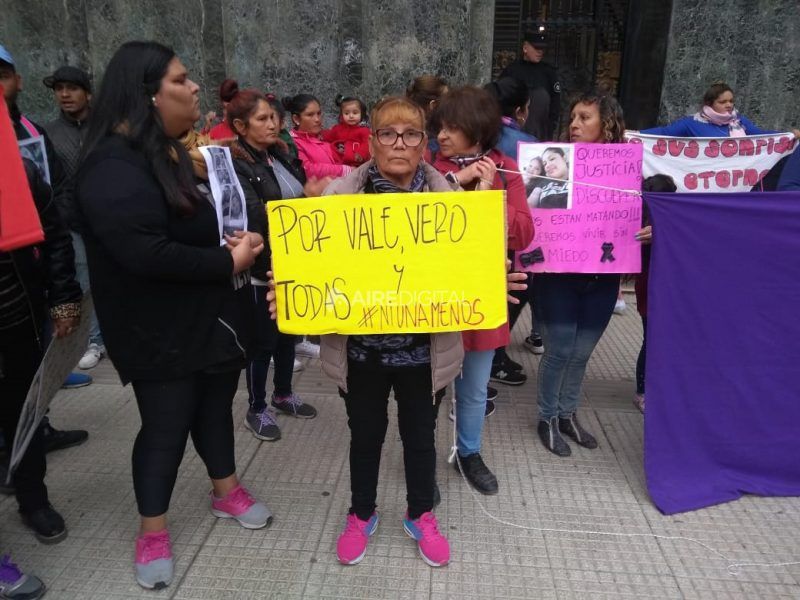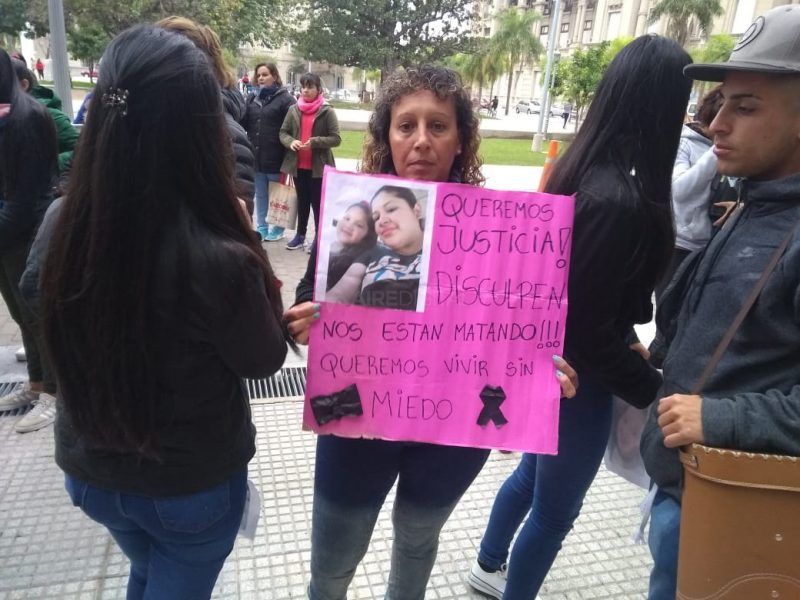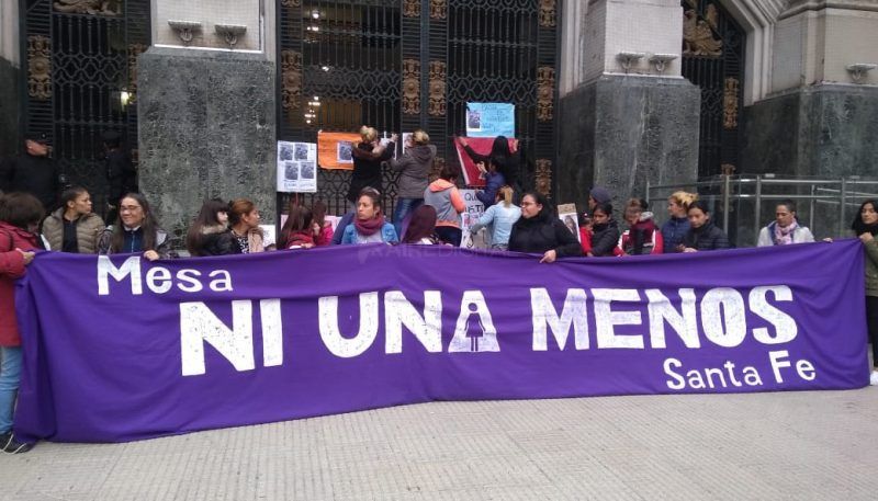 Familiares, amigos de las víctimas y representantes de la Mesa Ni Una Menos Santa Fe, se manifiestan en Tribunales.