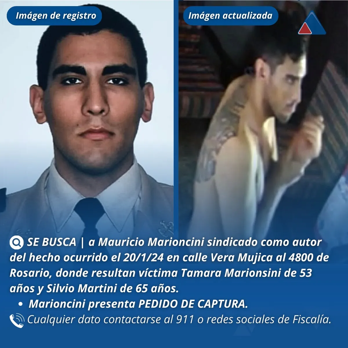 El Ministerio Público de la Acusación (MPA) emitió un pedido oficial para dar con el hombre acusado del doble crimen ocurrido este sábado en la ciudad de Rosario donde resultaron muertos una mujer de 53 años y su pareja de 65. Se trata de Mauricio Marionsini y es hijo de una de las víctimas.