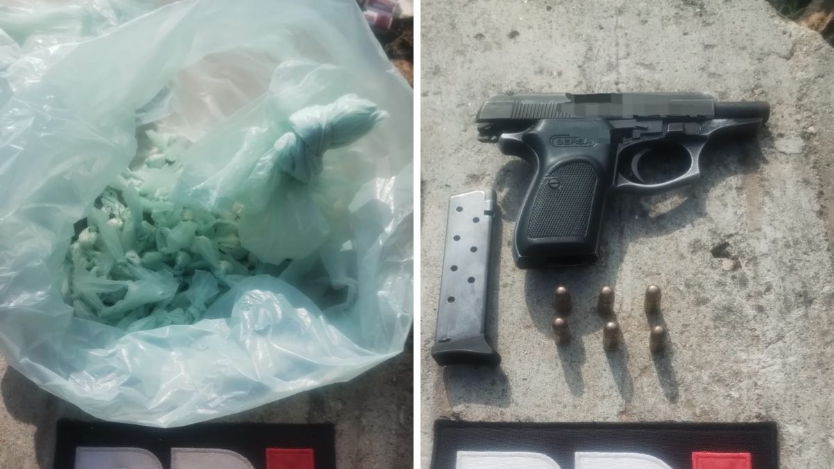 Asimismo, con las autorizaciones pertinentes, se efectuaron secuestros en domicilios linderos y en un terreno baldío, donde se halló un arma de fuego calibre .380 con municiones, dinero en efectivo y más envoltorios con material estupefaciente.