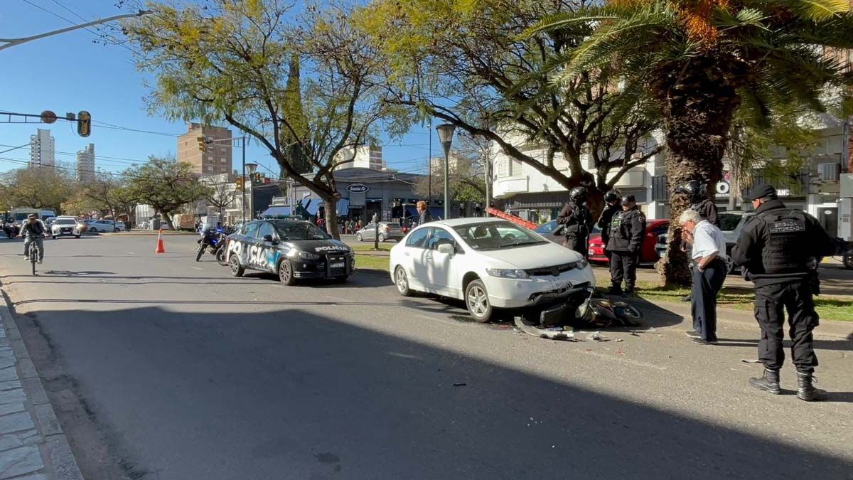 Fuerte choque en Santa Fe: un auto arrolló a una moto, que terminó abajo de una camioneta en pleno Bulevar