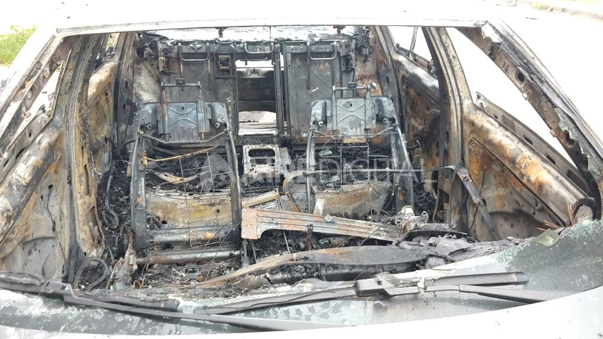 Según constataron los peritos policiales, el incendio fue intencional. Al parecer los quemacoches rompieron el vidrio del techo del auto y arrojaron un elemento con combustibles que provocó la explosión.