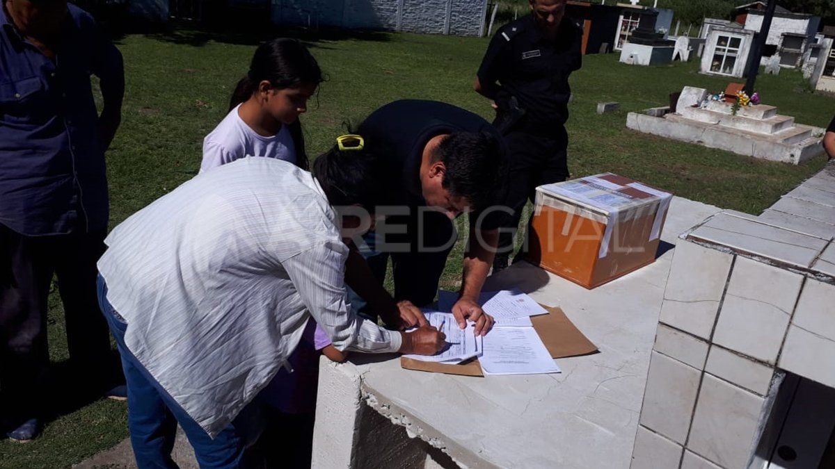 La urna fue trasladada por personal policial desde el Cuerpo Médico Forense de Rosario, donde hace seis meses fueron remitidos para ser sometidos a pericias, las pericias que permitieron determinar que los huesos pertenecían a Rosalía.