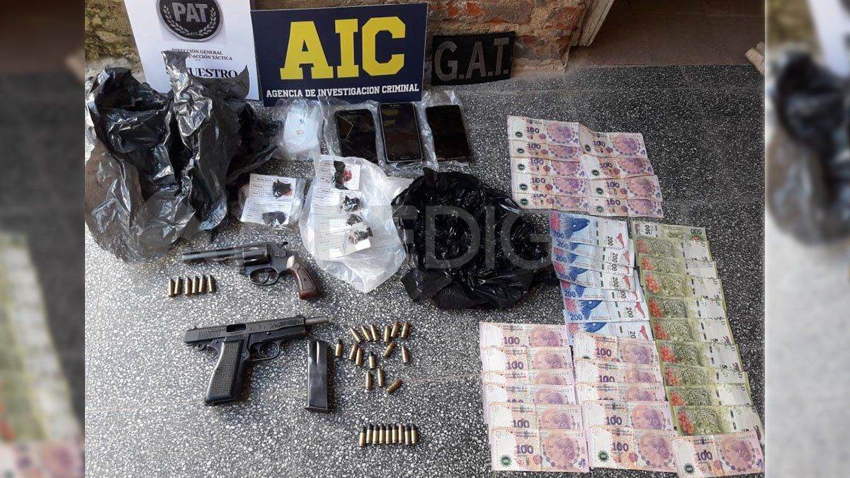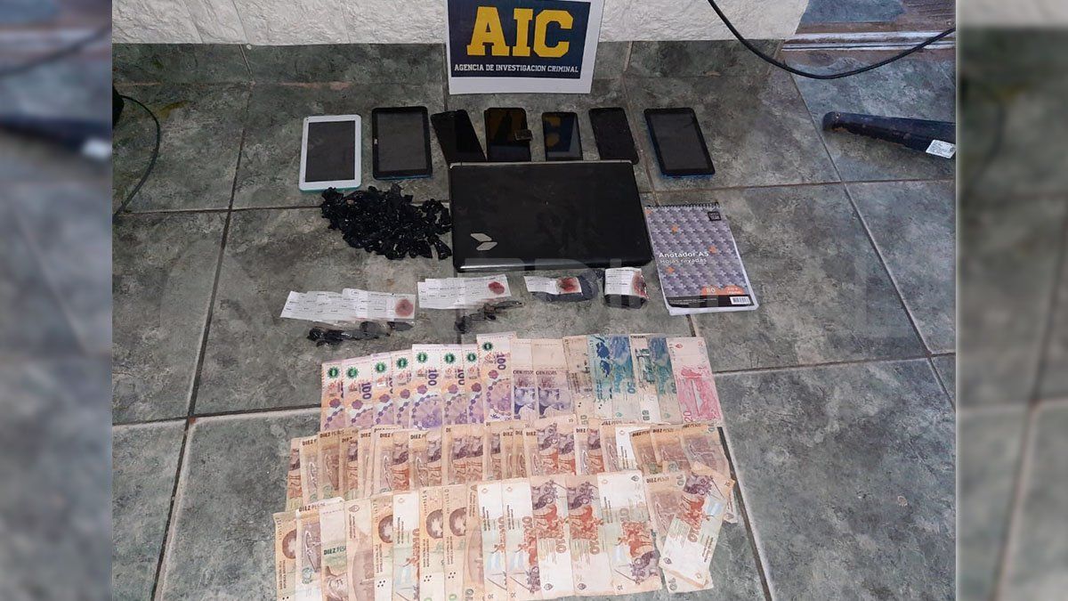 En el interno 4 del pasillo se secuestró dinero en efectivo por una suma total de $120.000, seis teléfonos celulares, dos balanzas, 16 envoltorios de cocaína por 130 gramos y tres cuadernillos con anotaciones. En tanto, en el tercer interno del pasillo se detuvo a un hombre identificado como Pedro P. y se secuestraron tres teléfonos celulares, $8.500, 61 envoltorios de marihuana por 83 gramos y dos armas de fuego: una pistola calibre 9 mm y un revolver calibre 32. En tato, en el allanamiento realizado en la finca ubicada en Rincón se secuestraron diez teléfonos celulares.