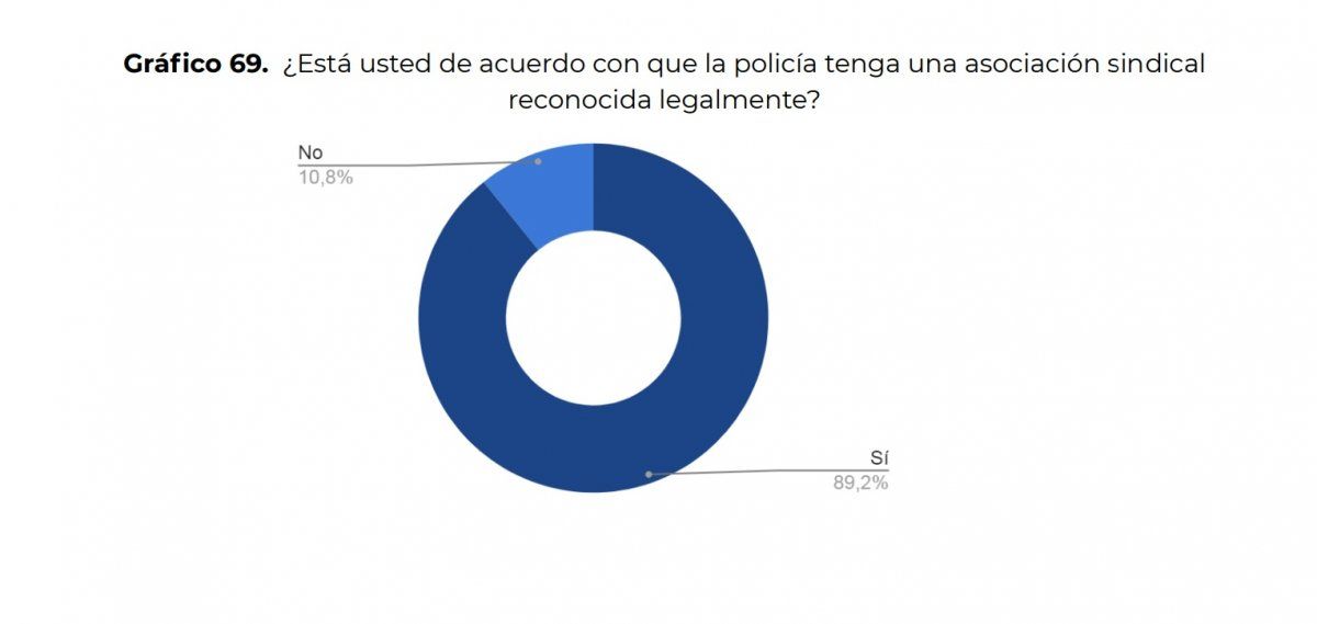 Según la encuesta realizada (y difundida de manera pública por el Observatorio), el 89,2% de los policías que prestan servicios en la URI indicaron que sería adecuado que su trabajo esté adherido a una entidad sindical legal y solo un 10,8% respondió que no, por lo que nueve de cada diez agentes quisieran ser representados por un gremio.