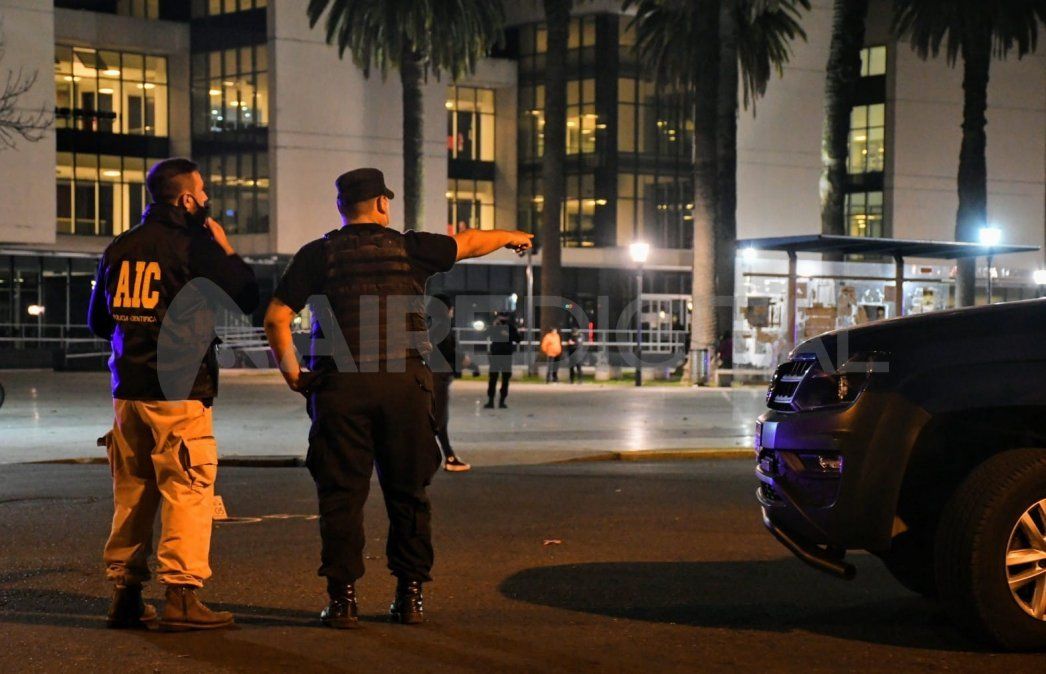 Hasta el momento, la policía detectó dos impactos de bala en la parte del frente del edificio por calle Sarmiento. La Agencia de Investigación Criminal trabaja en el lugar para determinar más detalles del ataque.