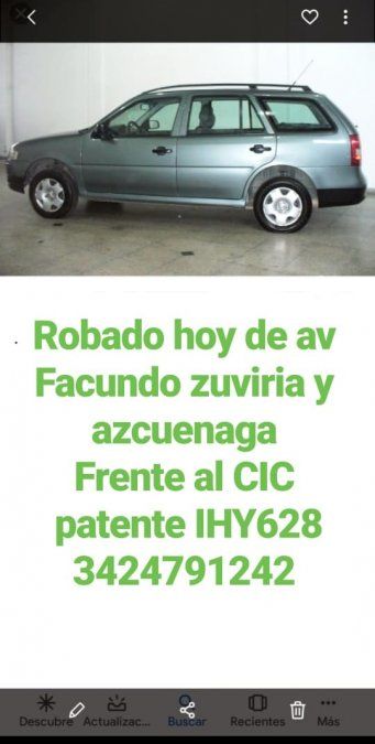 Se trata de un auto Gol Country color verde (patente IHY 628). Los dueños están preocupados por la pérdida del vehículo ya que lo usan como herramienta de trabajo para el traslado de la mercadería de su local comercial.