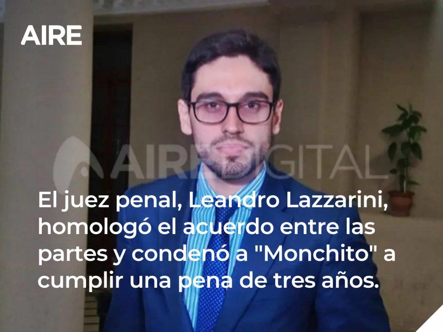 El juez penal, Leandro Lazzarini, homologó un acuerdo entre las partes y en los próximos días deberán emitir el fallo condenatorio para el hombre. El procedimiento abreviado cerrado el martes, determinó que “Monchito” sea condenado por la calificación jurídica de dos hechos endilgados por la Fiscalía que lo tienen como autor de “lesiones graves dolosas” y “daños y amenazas calificadas”.