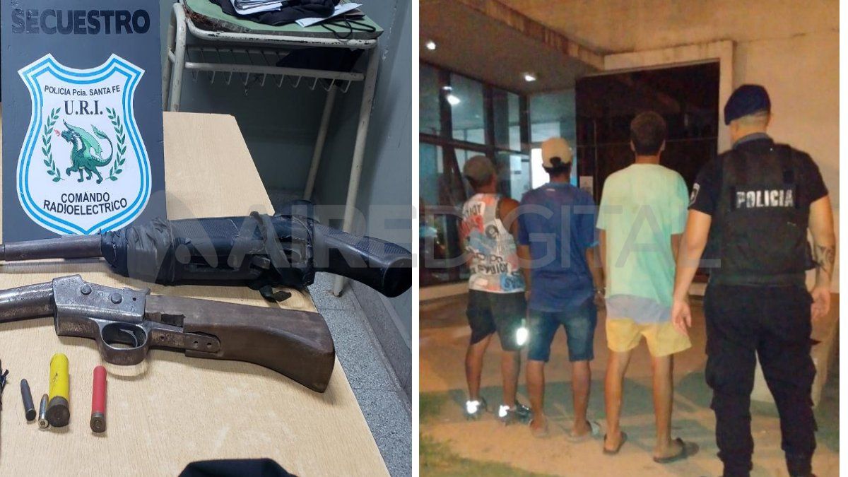 Luego, realizaron una requisa en la vivienda donde encontraron un arma de fuego calibre 14, una carabina calibre 22 y varios cartuchos. Trasladaron a los jóvenes de 19, 26 y 27 años a la Subcomisaría N° 17.