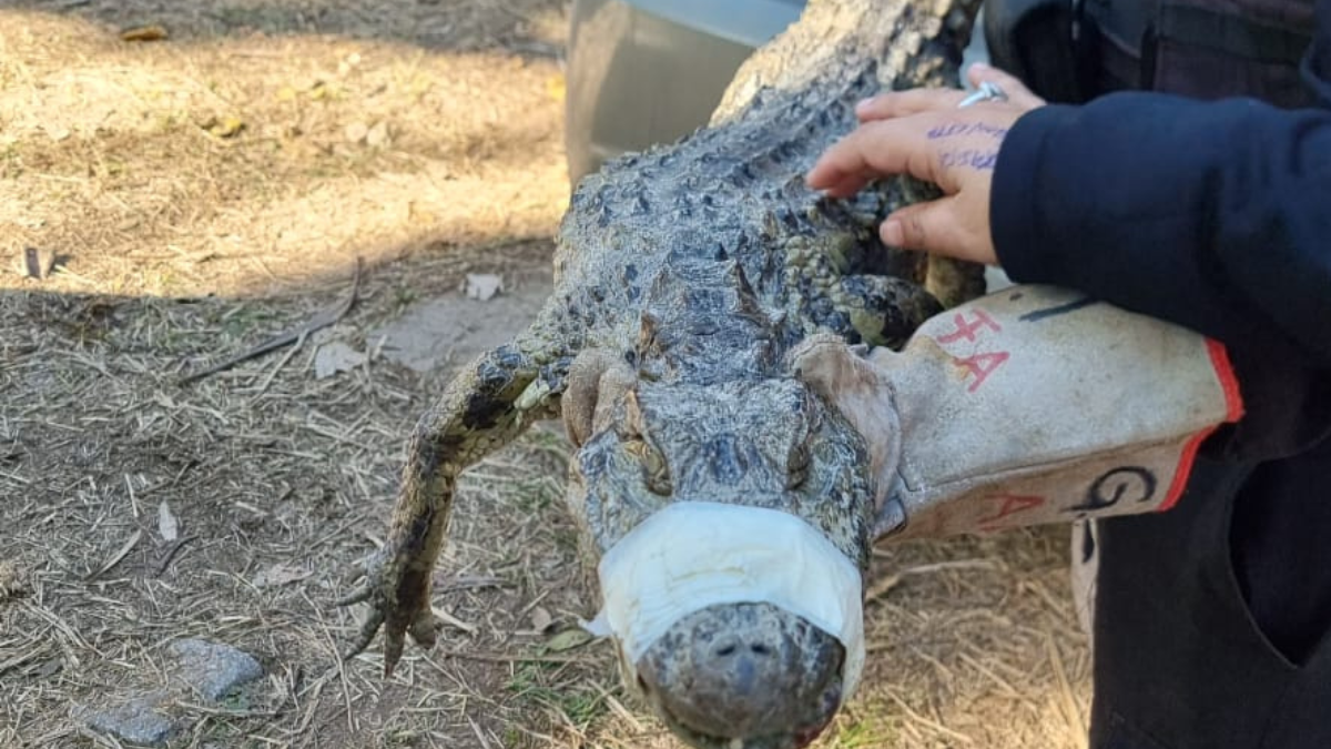 Un yacaré de metro y medio fue rescatado por la policía ecológica, tras haber sido avisados por una persona, que tenía el animal, en el baúl de su auto.