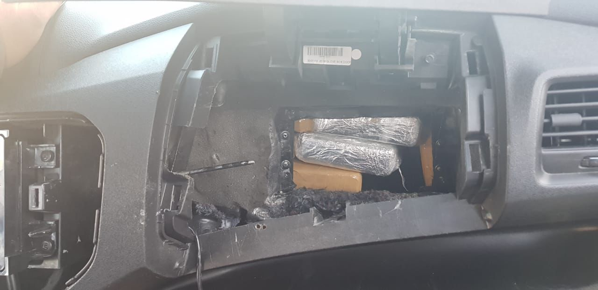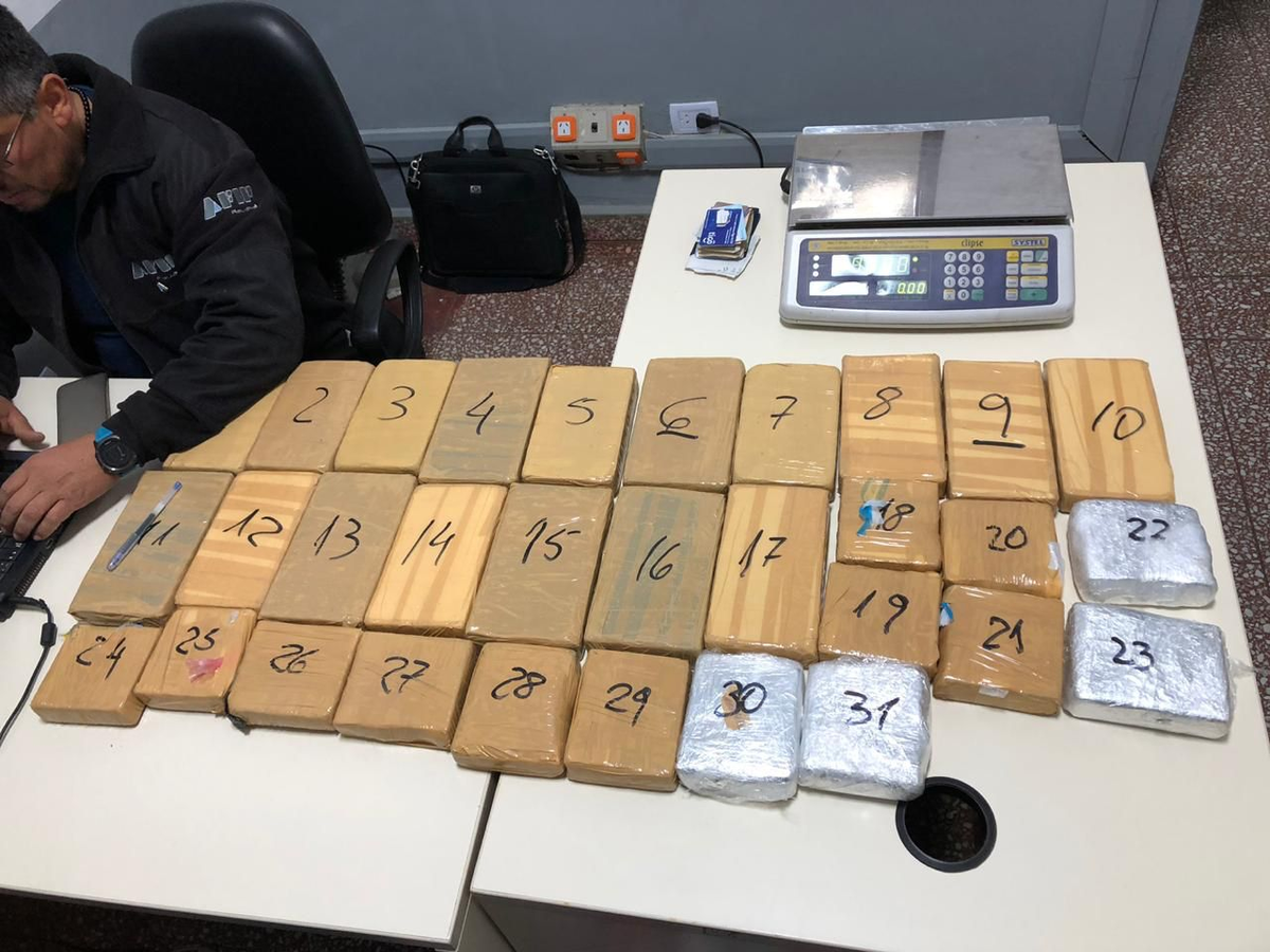Con ese indicio, los agentes aduaneros comenzaron a desmontar el paragolpes y encontraron en el sector del vehículo señalado por el can un total de 34 paquetes de color gris, algunos adosados y otros ocultos dentro de una caja rectangular de aluminio, especialmente acondicionada para disimular el transporte de la droga.