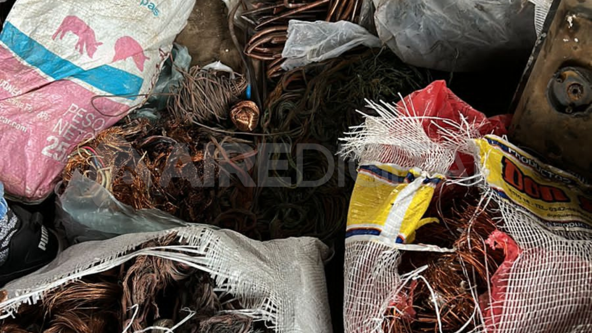 Secuestraron 498 kilos de cables robados durante un allanamiento en una chatarrería en Jose Cibils y Pasaje Ingenieros. Entre los elementos se contaron luminarias públicas, cables de telefonía y durmientes de ferrocarril que fueron identificados por las empresas prestatarias de los servicios.