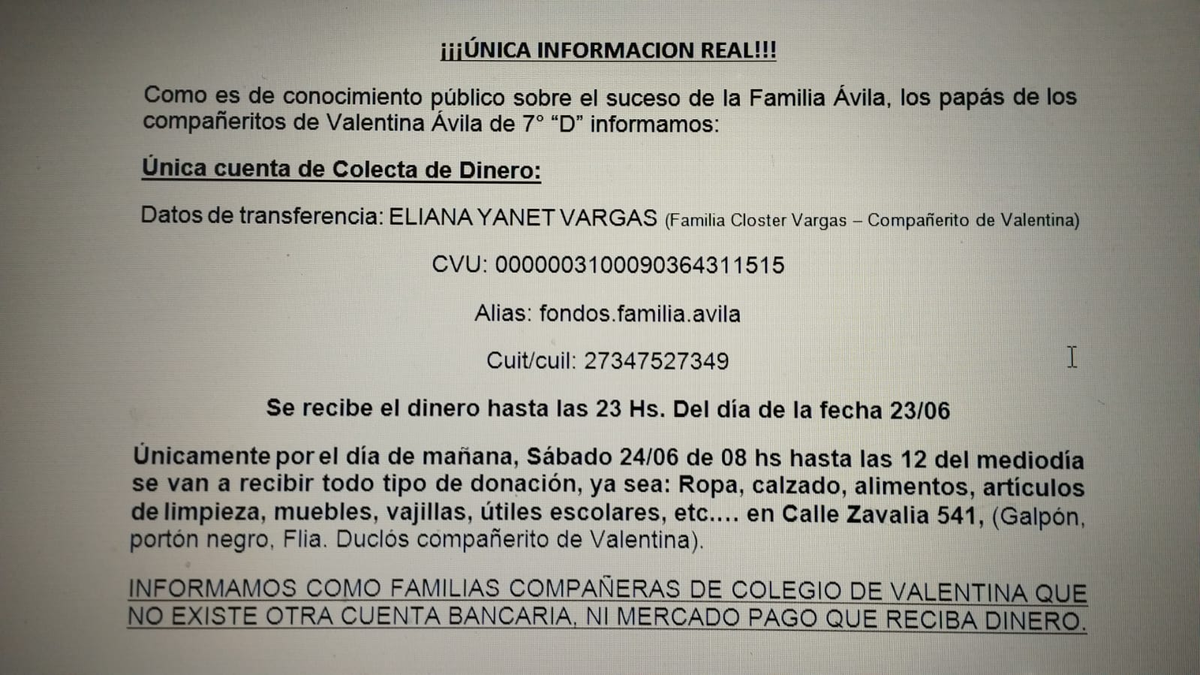 Como en cada una de estas acciones, el temor por las estafas, las llevó a las mujeres a aclarar que existe una sola cuenta propuesta para realizar los aportes económicos y es la siguiente.