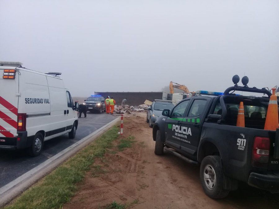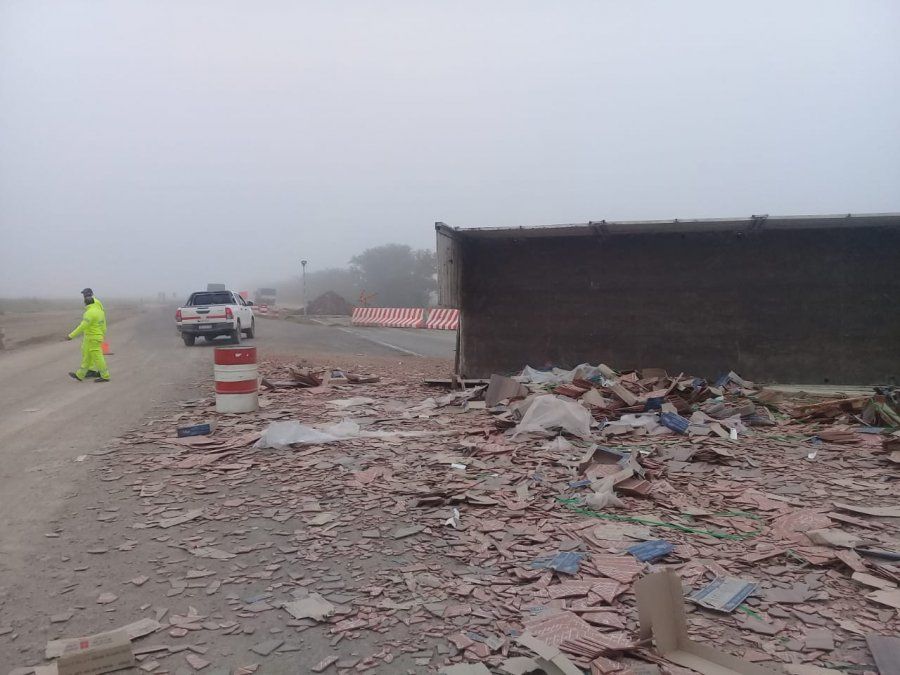 El semirremolque que llevaba ladrillos huecos quedó de costado en el asfalto y perdió su carga. Por el accidente, una persona sufrió heridas leves y fue asistida por servicios de Salud.