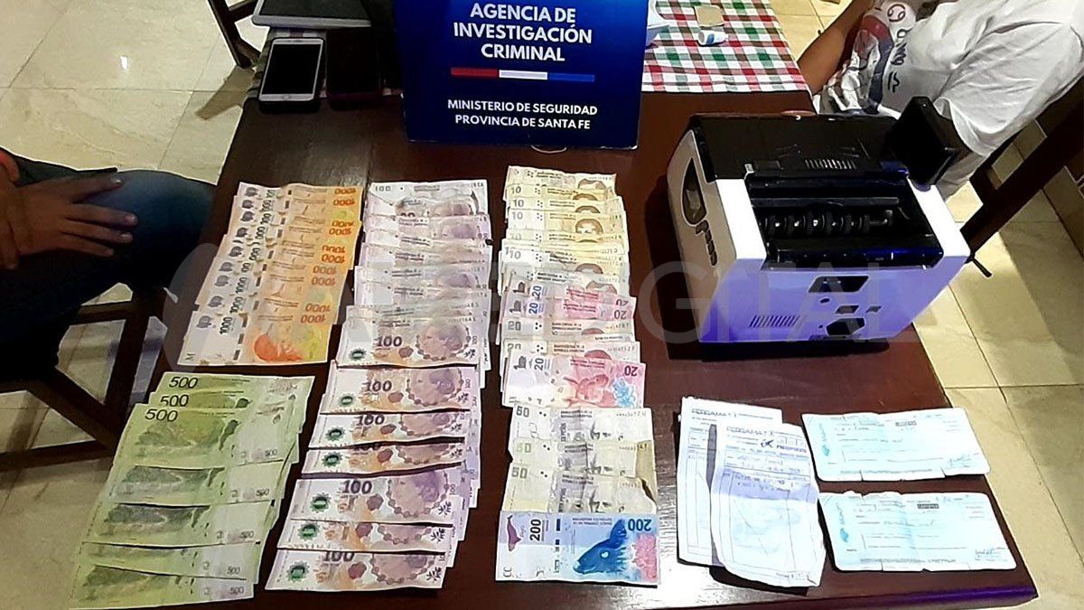 Los sospechosos fueron identificados como Juan M.A. (empresario de Capitán Bermúdez), Alejandro G. (exvicejefe comunal de Luis Palacios), Guillermo R. y Santiago G., y como resultado de los siete allanamientos se logró el secuestro de dinero en efectivo, una máquina de contar billetes, cheques, armas, municiones y una motocicleta.