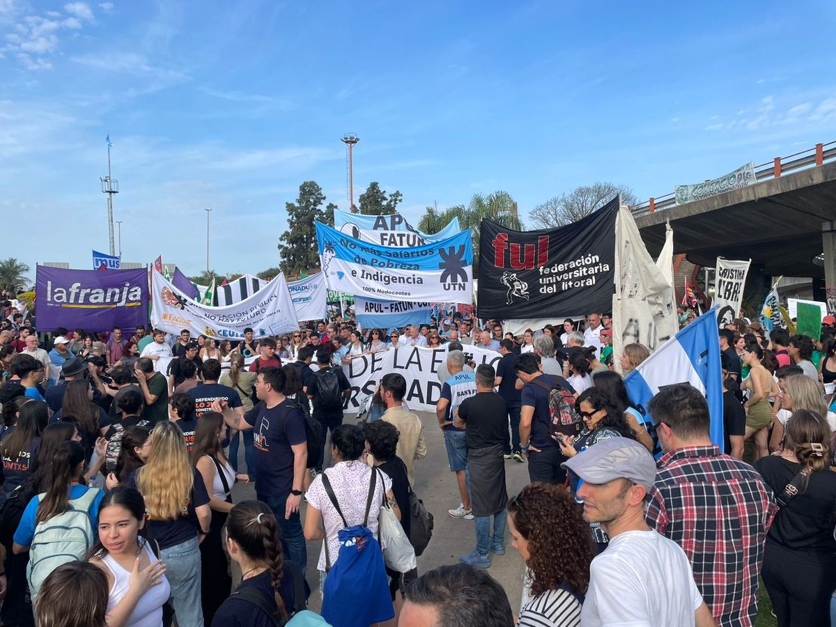 Este miércoles se realizó la Marcha Federal Universitaria contra el veto de Javier Milei en la ciudad de Santa Fe.