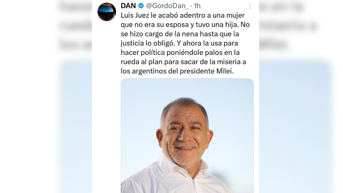 El jefe de Gabinete, Guillermo Francos, se despegó este jueves del militante libertario Daniel Parisini, conocido como “El Gordo Dan”, tras el ofensivo posteo contra el senador Luis Juez y su hija. El funcionario del Gobierno nacional calificó la publicación como una “barbaridad” y remarcó que el tuitero “no forma parte del Gobierno”.
