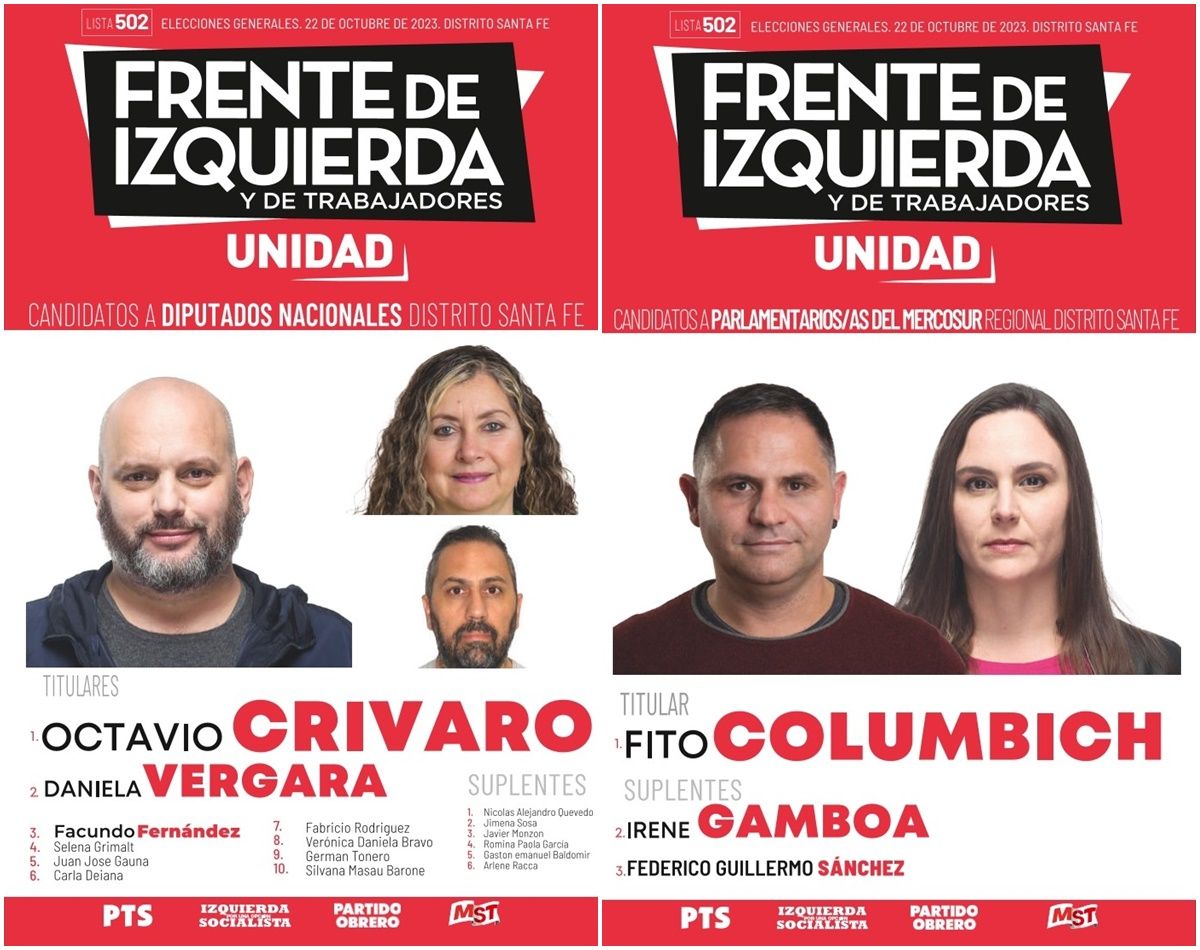Finalmente, en "Frente de Izquierda y los Trabajadores", la lista está integrada por Octavio Crivaro, Daniela Vergara, Facundo Fernández, Selena Grimalt, Juan José Gauna, Carla Deiana, Fabricio Rodriguez, Verónica Bravo, Germán Tonero y Silvana Masau. En Parlasaur: Adolfo Columbich
