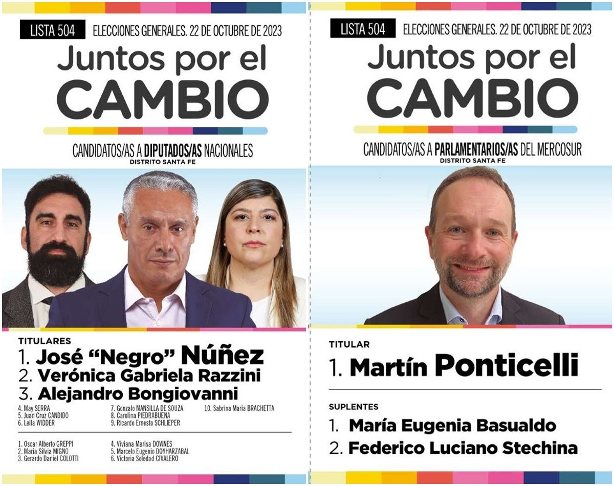 En "Juntos por el Cambio", la lista está integrada por: José Núñez, Verónica Razzini, Alejandro Bongiovanni, María Liliana Serra, Juan Cruz Cándido, Leila Widder, Gonzalo Mansilla de Sousa, Carolina Piedrabuena, Ricardo Schlieper y Sabrina Brachetta. En tanto, Martín Ponticcelli es el candidato del Parlasur.