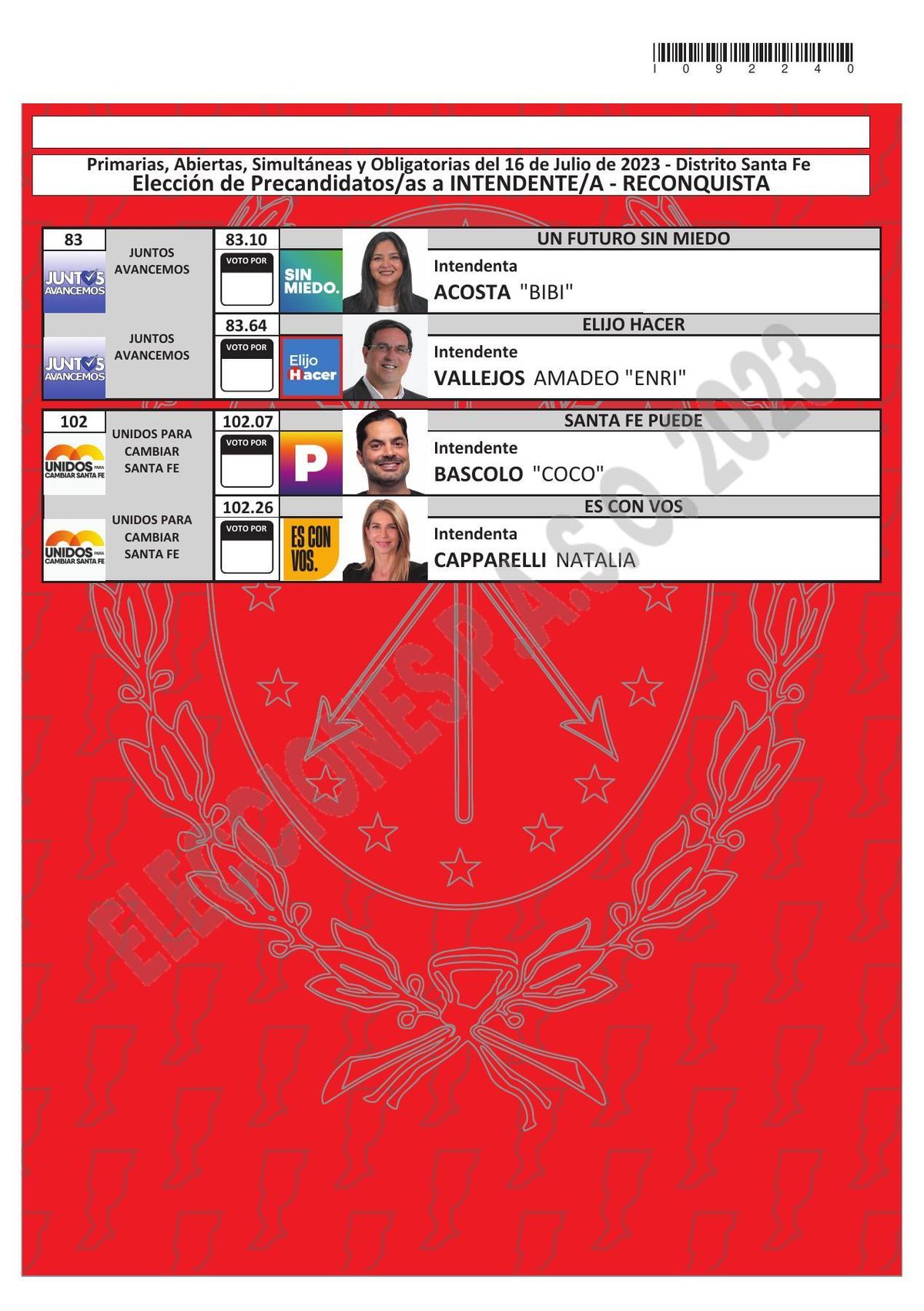 Elecciones Santa Fe 2023: esta es la boleta única de precandidatos a intendente de Reconquista