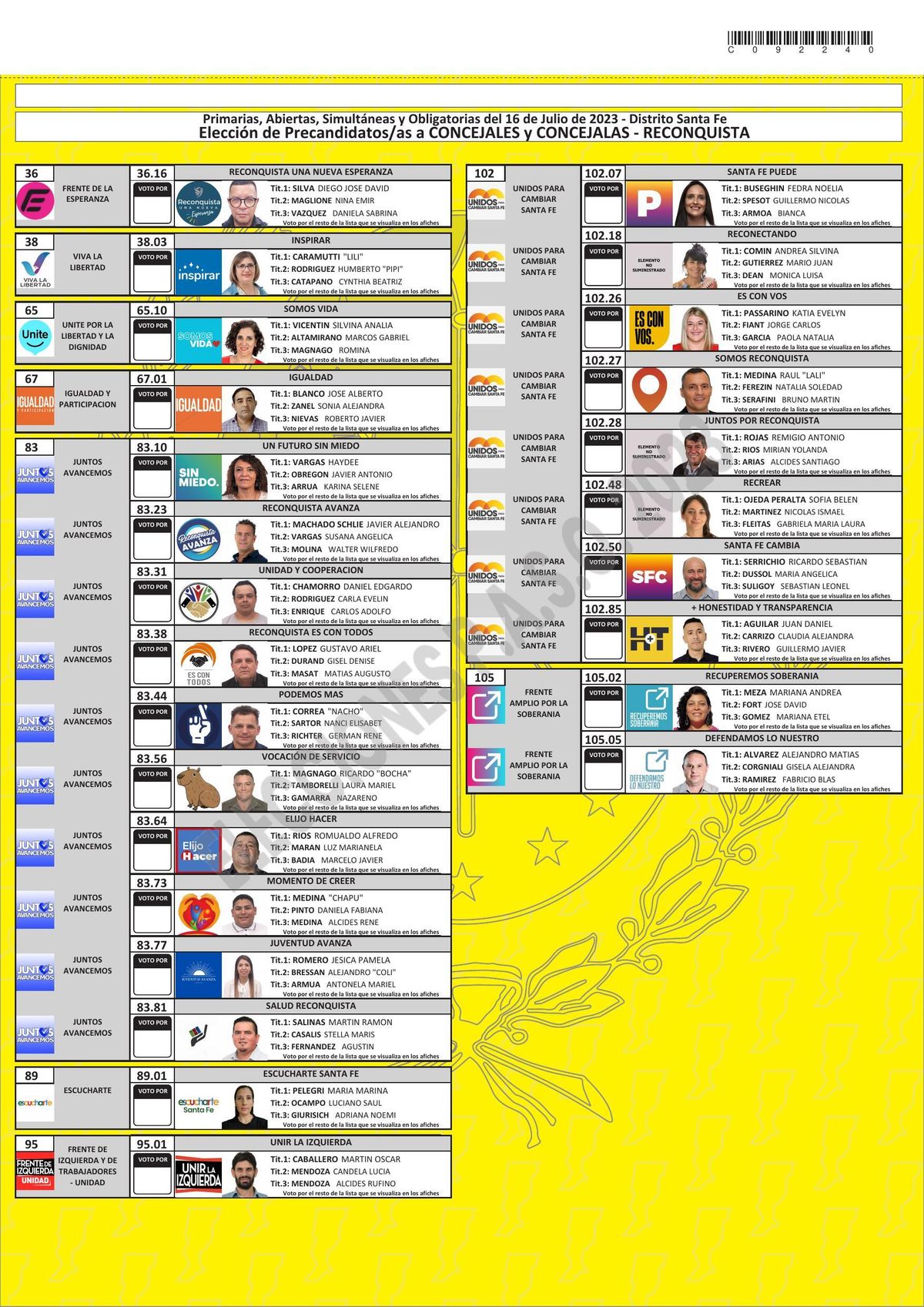 Elecciones Santa Fe 2023: esta es la boleta única de precandidatos a concejales de Reconquista