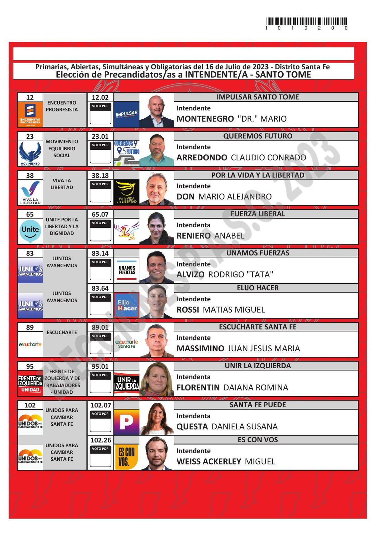 Elecciones Santa Fe 2023: esta es la boleta única de precandidatos a intendente de Santo Tomé