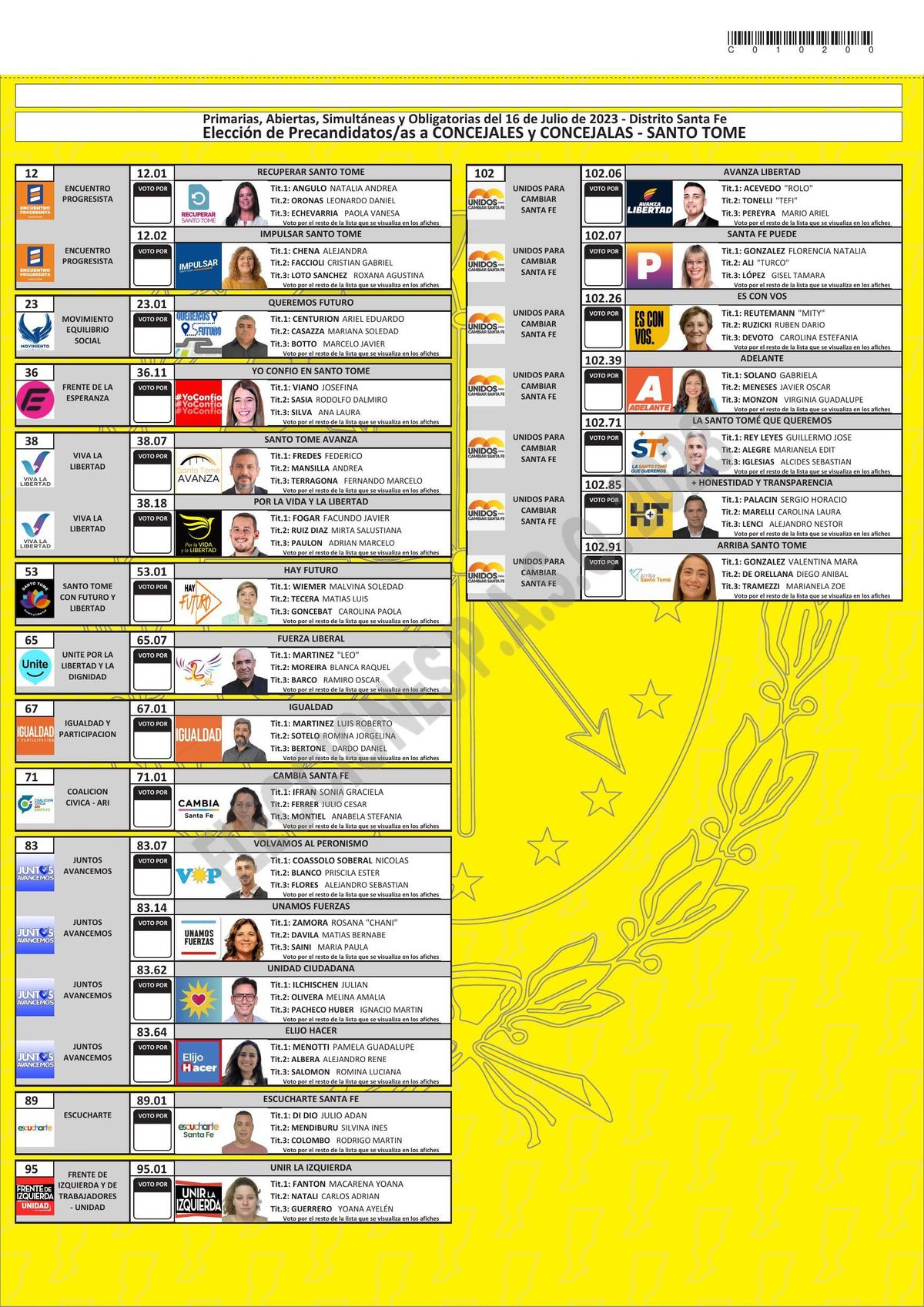 Elecciones Santa Fe 2023: esta es la boleta única de precandidatos a concejales de Santo Tomé