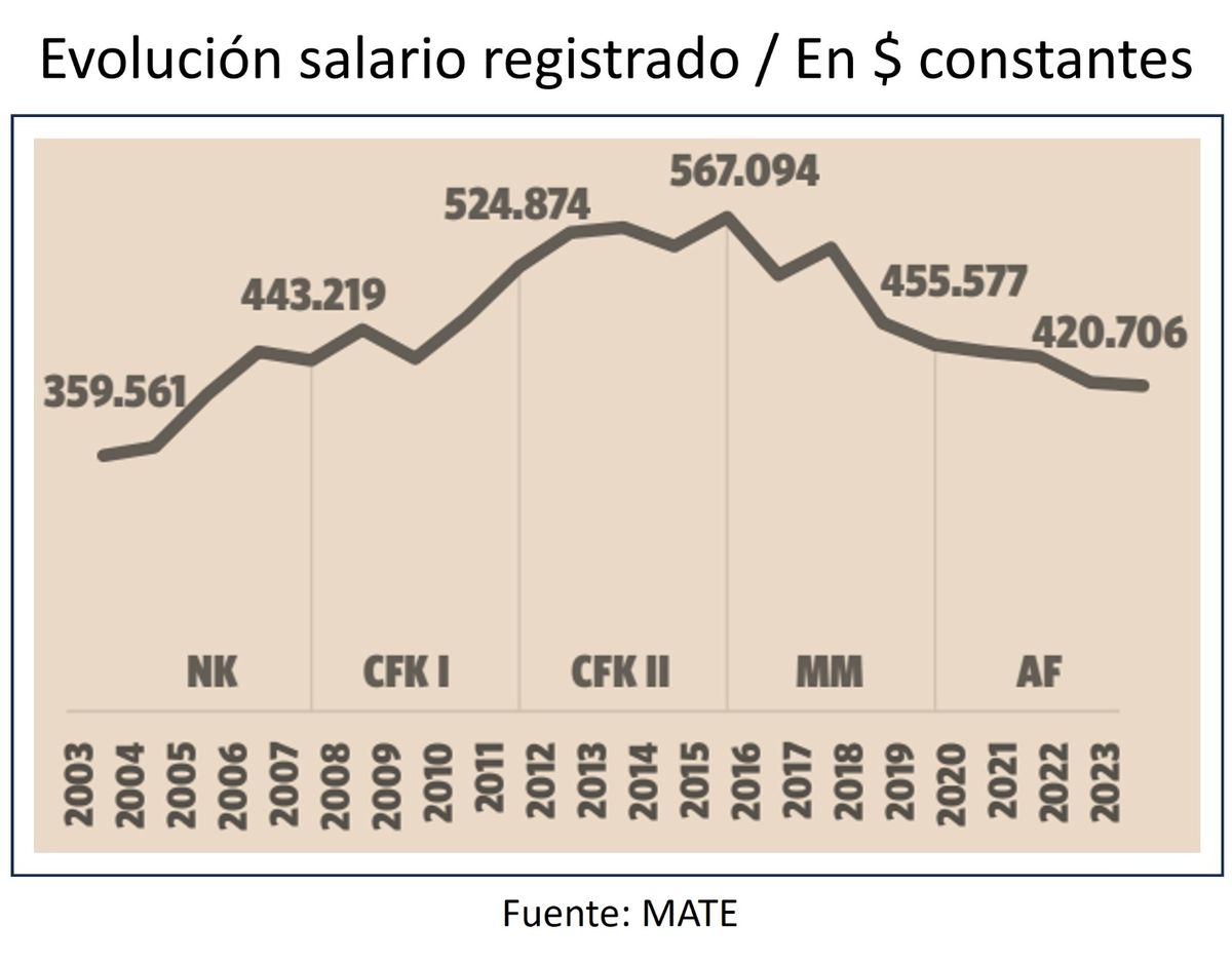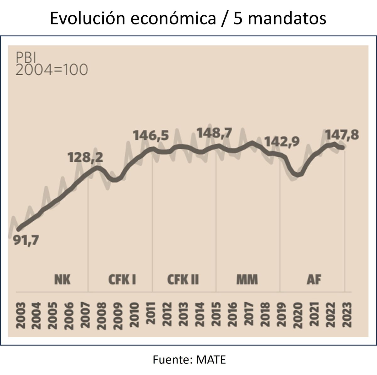 Expuesto el problema de la restricción externa como el más importante de ayer, hoy y mañana, presentemos las cifras del informe de MATE para la evolución de la economía y los salarios públicos y privados.
