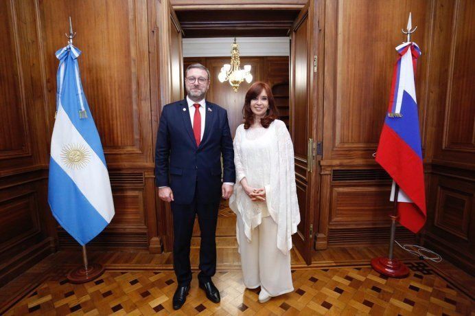 Fernández de Kirchner se reunió luego con la delegación de Rusia que integran el representante Oficial del Presidente de la Federación de Rusia y Presidente del Comité de los Asuntos Internacionales del Consejo Federal de la Asamblea Federal de la Federación de Rusia, Konstantin Kosachev; el embajador Extraordinario y Plenipotenciario de la Federación de Rusia, Dmitry Feoktistov y Oleg Khodyrev, vicejefe de la Oficina del Comité de los Asuntos Internacionales del Consejo Federal.