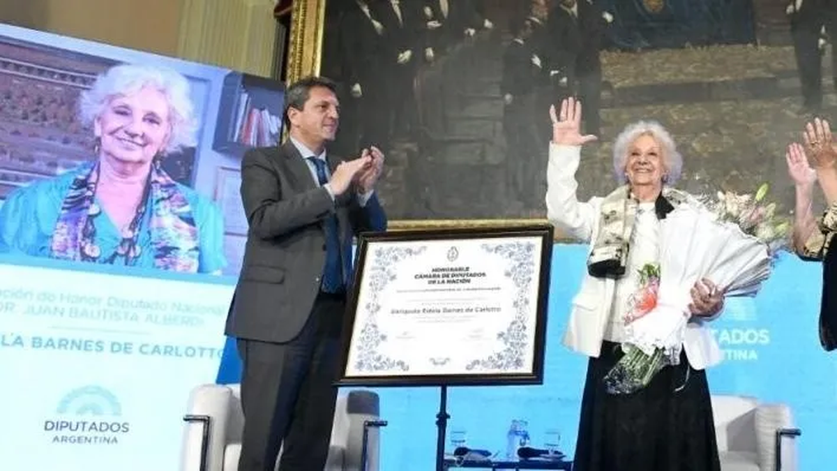 La presidenta de Abuelas de Plaza de Mayo, Estela de Carlotto, se refirió a la elección de Sergio Massa como el candidato de unidad de Unión por la Patria: "Sé que Massa va a ser el próximo presidente. Fue muy positivo ver a Massa y Cristina juntos en el acto". Y reconoció que se quedó con las ganas de que Eduardo Wado De Pedro fuera el elegido: "Por supuesto que me quede con ganas. Él es un nieto muy querido y además es una persona con grandes condiciones políticas”.