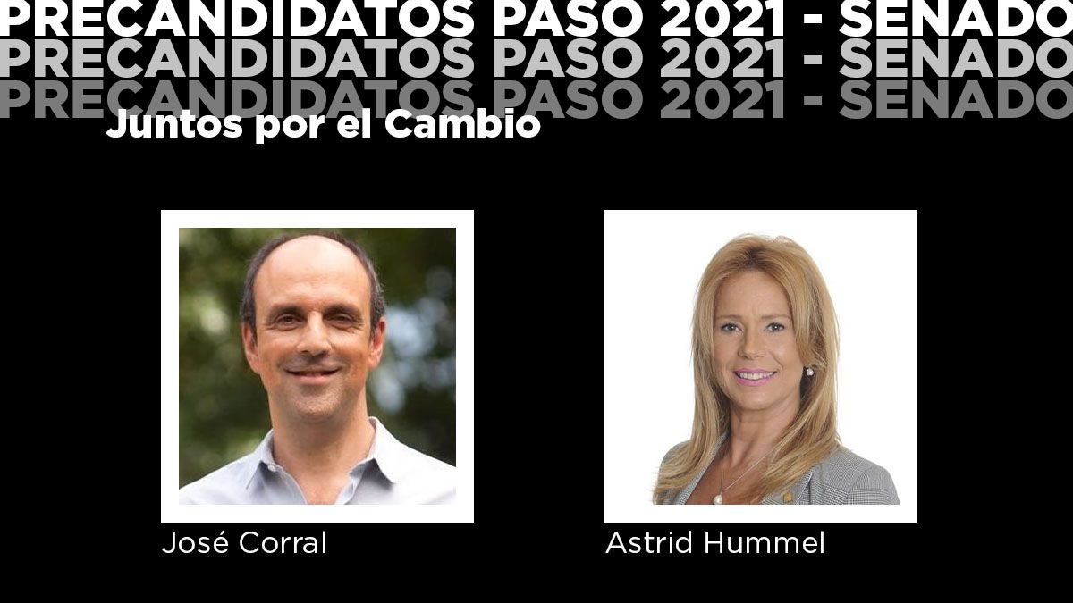 A José Corral lo acompaña en la lista para el Senado Astrid Hummel. Los precandidatos a senadores suplentes son Albor "Niky" Cantard (UCR) y Nadia Ruggiero (PRO).