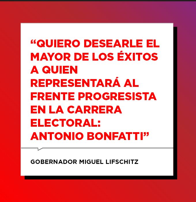 En medio de los aplausos finales, Lifschitz hizo oficial lo que ya se barajaba en las últimas semanas: “Quiero desearle el mayor de los éxitos a quien representará al Frente Progresista en la carrera electoral: el ex gobernador y mi amigo, Antonio Bonfatti”, concluyó.