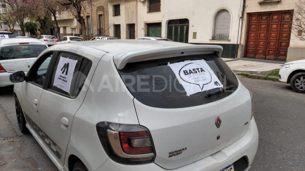 Este miércoles los trabajadores públicos de la provincia de Santa Fe salieron a las calles a manifestar su rechazo al acuerdo salarial entre el gobierno y los gremios, en particular los de la Administración Central, esto es Upcn y Ate. Una caravana de autos de más de tres cuadras partió desde las calles Moreno y Francia y recorría la ciudad, deteniendo la marcha en varias oficinas públicas de la capital provincial.