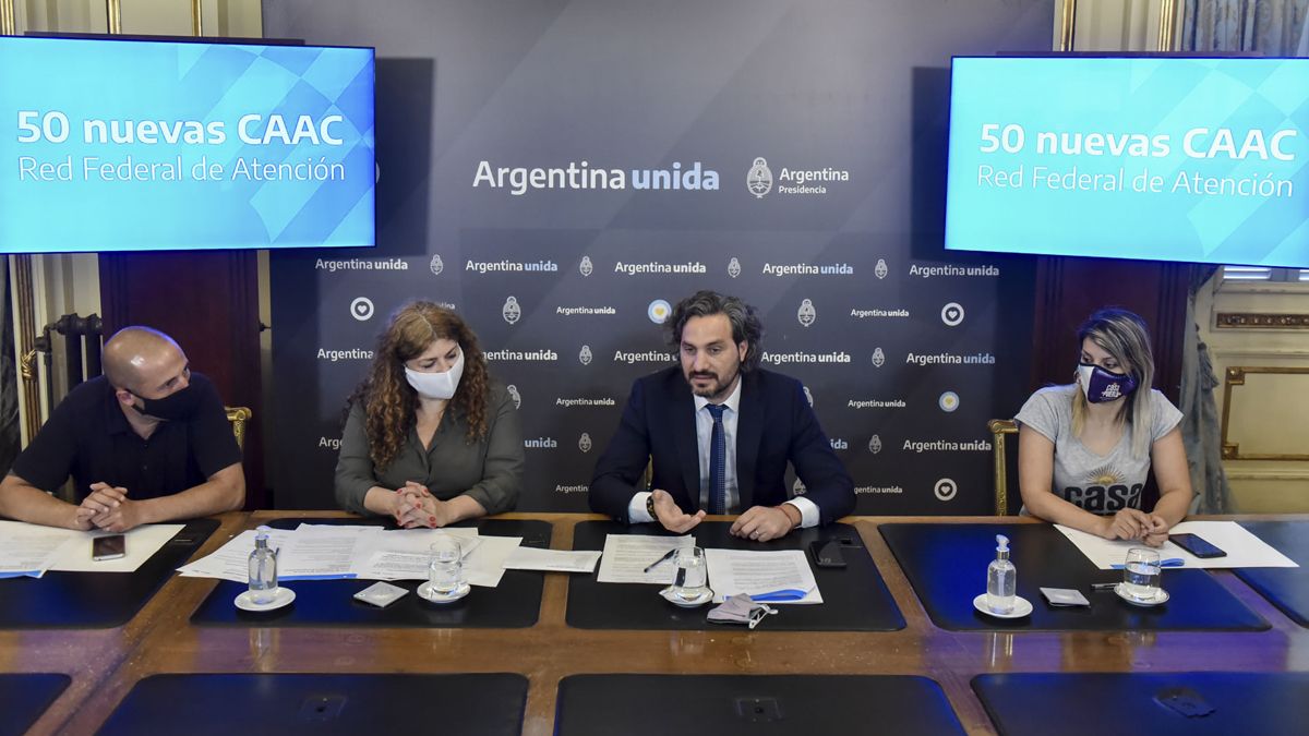 El jefe de Gabinete, Santiago Cafiero, inauguró esta mañana 50 nuevas Casas de Atención y Acompañamiento Comunitario (CAAC) con el objetivo de fortalecer la red de contención de personas con consumos problemáticos de sustancias y para evitar la criminalización punitiva de esas conductas.