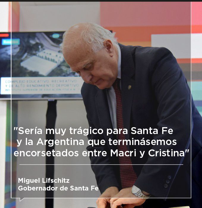 El gobernador santafesino, Miguel Lifschitz, consideró que sería “trágico” para el país tener que optar en las elecciones del año próximo entre el presidente Mauricio Macri y la senadora Cristina Kirchner. “Sería muy trágico para Santa Fe y la Argentina que terminásemos encorsetados entre Macri y Cristina”, enfatizó Lifschitz.